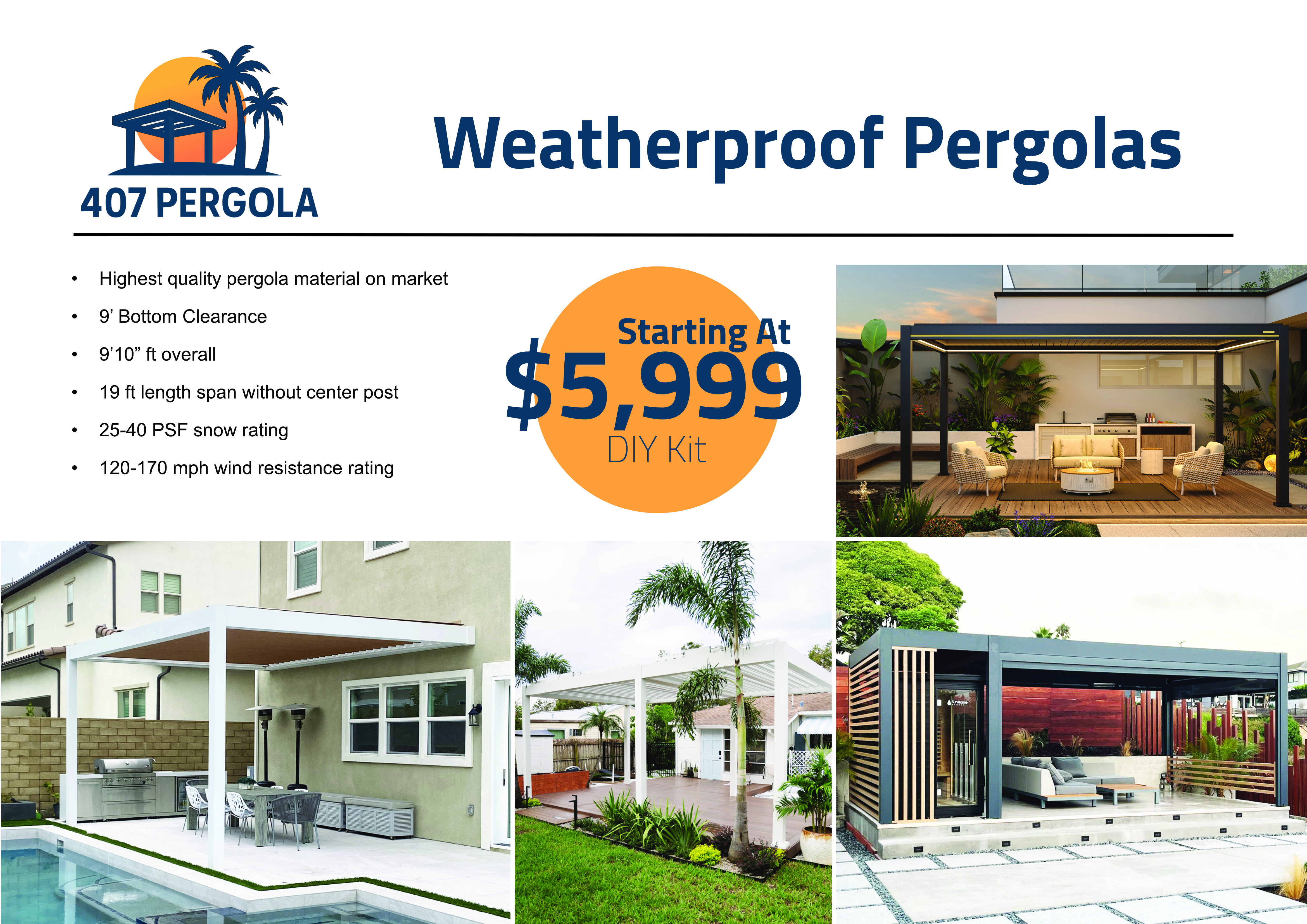 From a cozy 10x10 space to a sprawling custom design, we engineer every 407 Pergola project to perfectly fit your space and style. We offer a wide range of customization options.